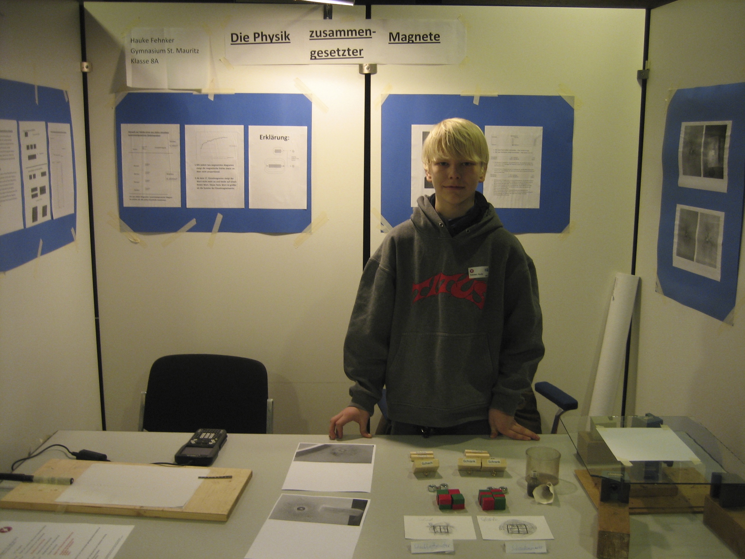 Hauke Fehnker (Klasse 8a) holte am Wochenende 12./13.5. den zweiten Platz beim Landeswettbewerb SchülerExperimentieren im Fach Physik. Er musste sich dabei gegen fünf Konkurrenten durchsetzen.