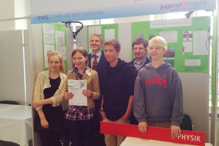 Am Freitag und Samstag der vergangenen Woche (26. und 27. April 2013) fand in Essen der diesjährige Landeswettbewerb „Schüler experimentieren“ statt. Zwei Schülerinnen und zwei Schüler des Gymnasiums St. Mauritz nahmen daran teil, nachdem sie Ende Februar im Regionalwettbewerb jeweils erste Preise gewonnen hatten. Die Themen der Arbeiten deckten dabei ein weites Spektrum ab, von „Kapillaren im Blutkreislauf“ (Naomi Seibt, 12 Jahre) über die „Modellierung eines Flüssigkeitsjets mit Hilfe von Münzen“ (Sophie Atzpodien, 13 Jahre) bis zur „Untersuchung des physikalischen Verhaltens von abschmelzenden Eisbergen“ (Hauke Fehnker und Fynn Schultheiß, 14 Jahre). Das monatelange und geduldige Experimentieren hat sich gelohnt. Die Jungforscher kehrten hochzufrieden mit zwei zweiten und einem dritten Platz nach Hause zurück.